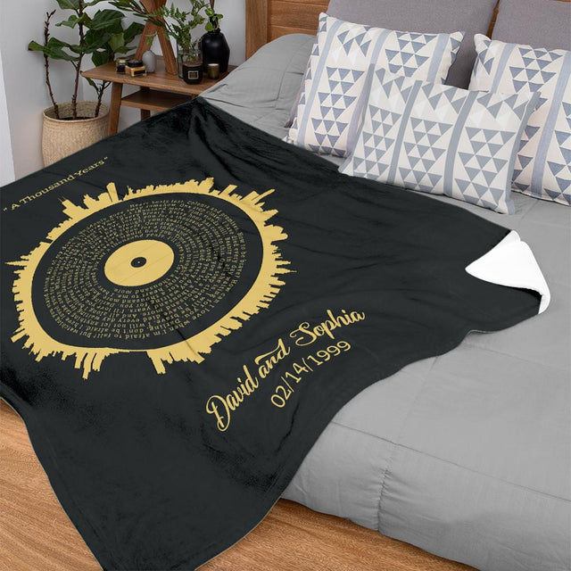 Personalized Blanket with your favorite song lyrics provided by you and customizable names and your wedding date on it. It can be the best anniversary gift.