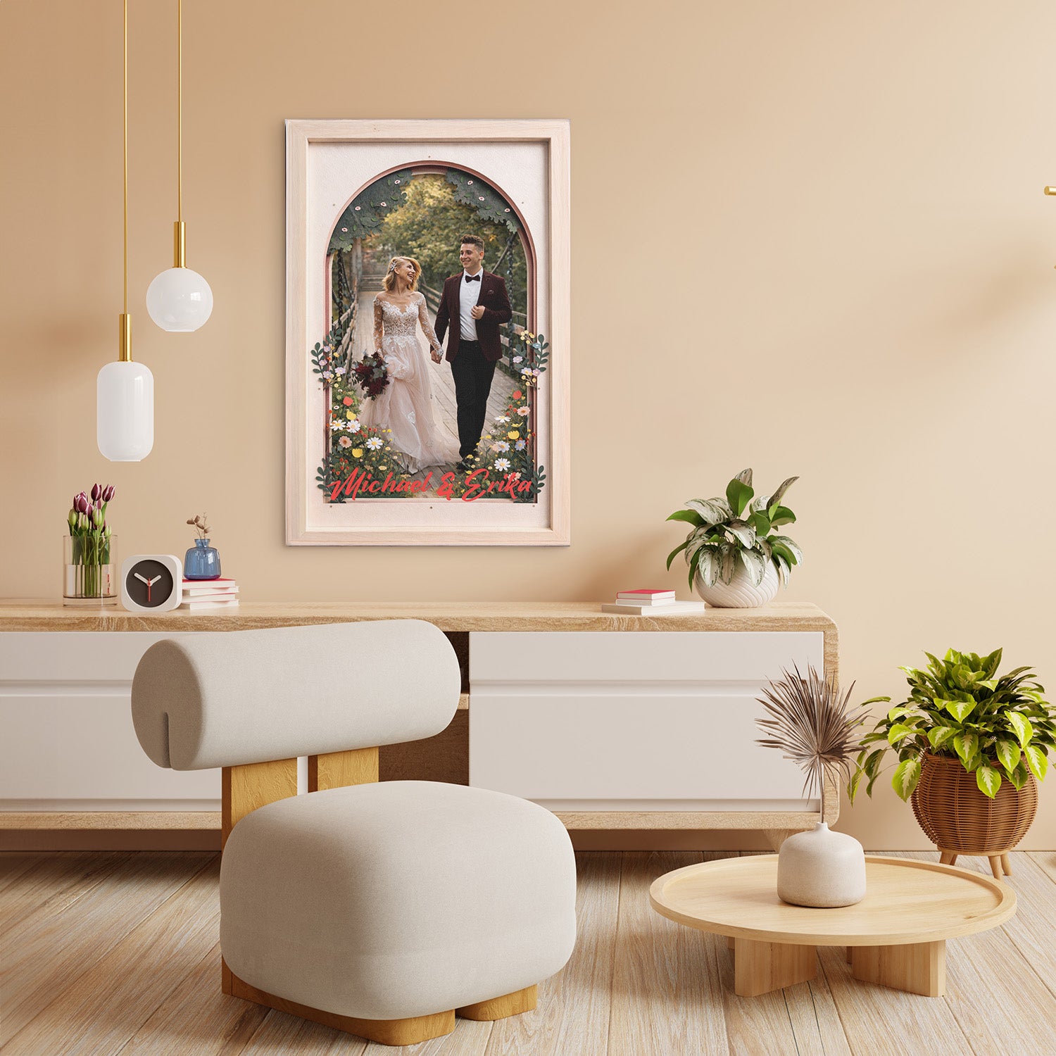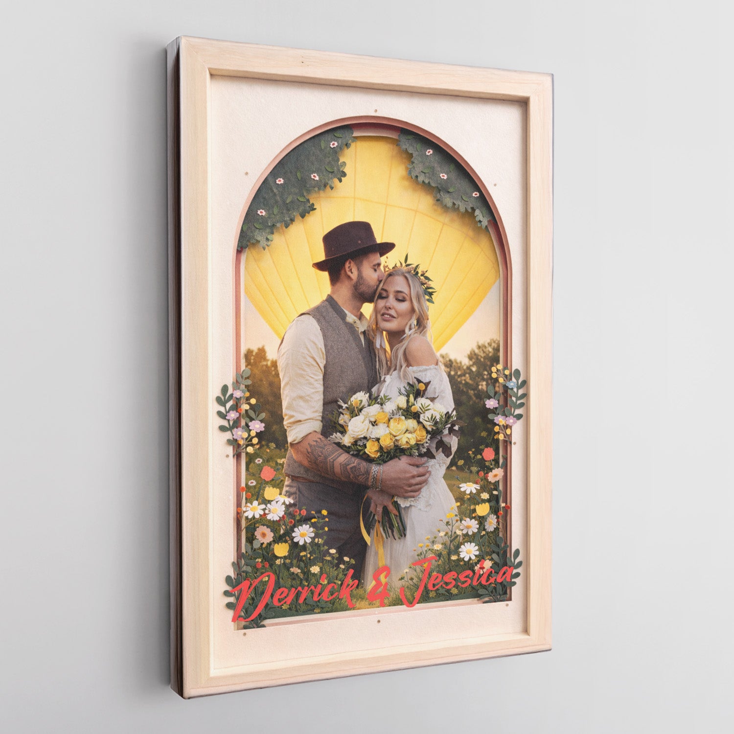 Celebrate your love story with this beautifully designed personalized couple canvas, featuring a romantic portrait framed by a soft arched window, blooming wildflowers, and a peaceful countryside backdrop. The intimate moment between the couple captures the warmth, commitment, and timeless beauty of true love, making this artwork a meaningful addition to any home. This canvas can be fully personalized with your names and a special date, turning a cherished photo or moment into a one-of-a-kind keepsake. Whether it’s created to commemorate a wedding day, engagement, anniversary, Valentine’s Day, or simply to celebrate your relationship, this custom canvas is a heartfelt gift for couples, husbands, wives, newlyweds, or partners who value memories that last forever.