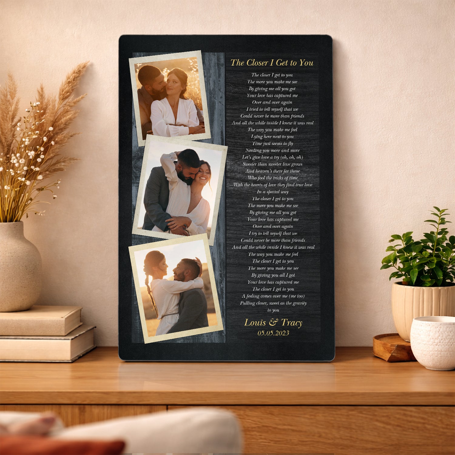 This heartfelt vertical design combines a three-photo collage with a beautifully written love poem, telling a story of connection, devotion and shared moments. Each photo captures a different expression of love, while the poem on the side adds emotional depth and meaning. Finished with personalized names and a special date, this artwork is a timeless keepsake for couples celebrating anniversaries, Valentine’s Day, weddings or meaningful milestones together.