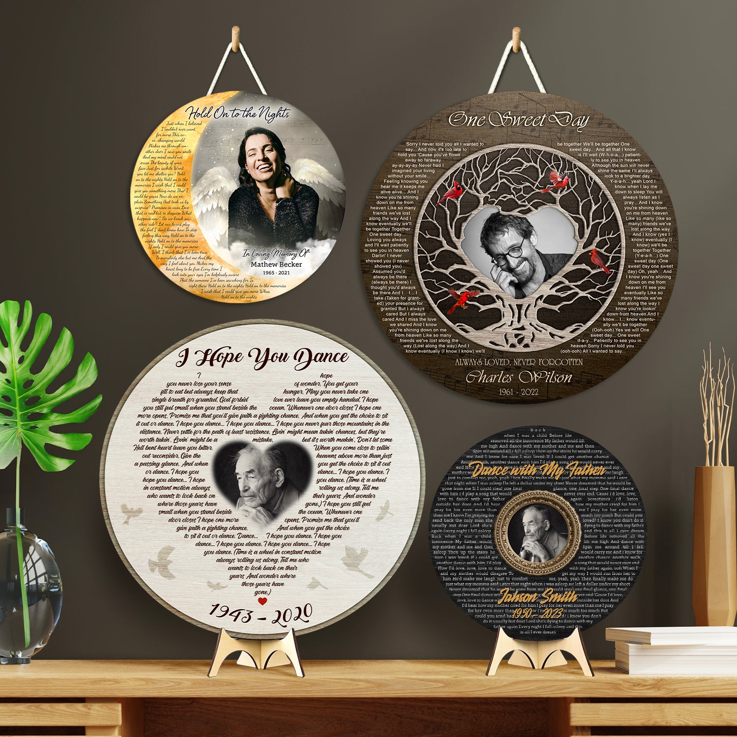 Personalized Round Wood Sign with Custom Photo and Lyrics, Memorial Gifts